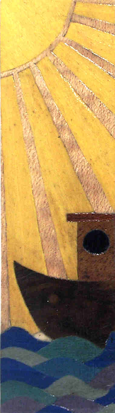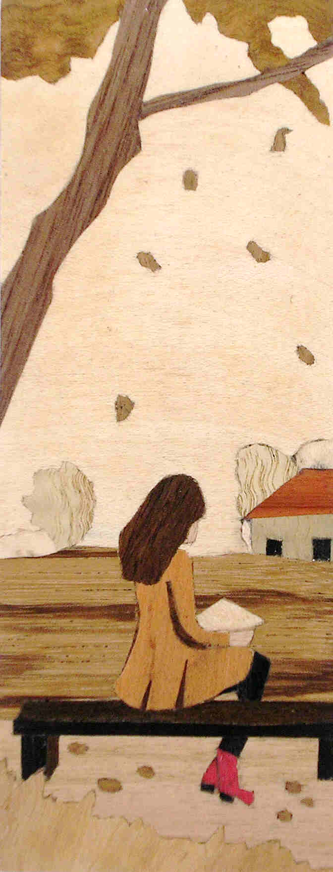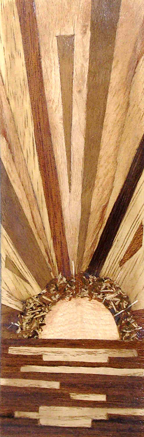 The 2025 subject was "A Bookmark" - no size or shape restriction was enforced, though most members aimed to keep their bookmark below 12 square inches so the item would be eligible for the Marquetry Society's 'miniature' classes.