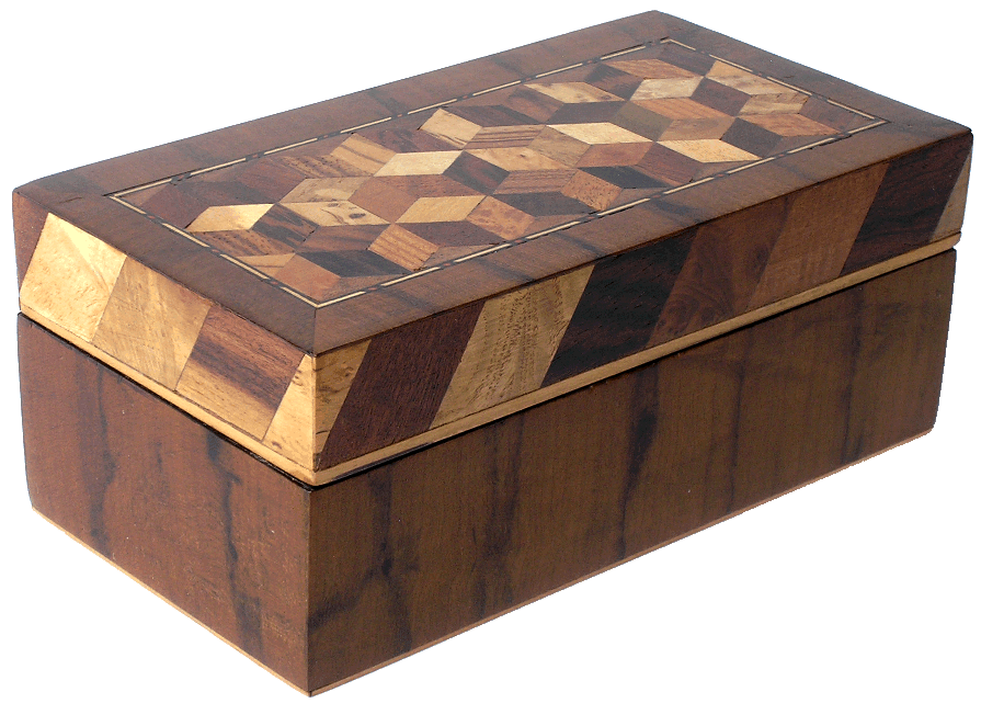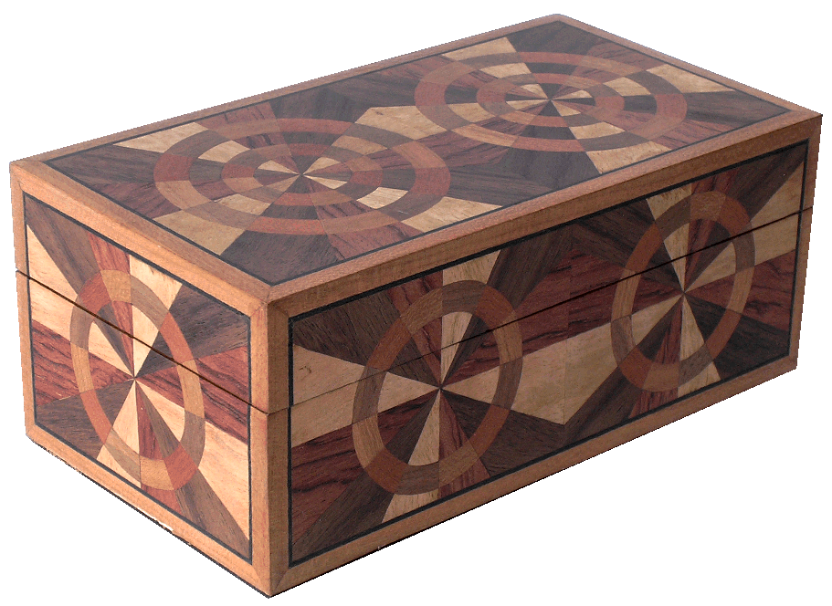 The 2017 subject was an identical, commercially purchased, box which had to be decorated with parquetry - geometric marquetry.