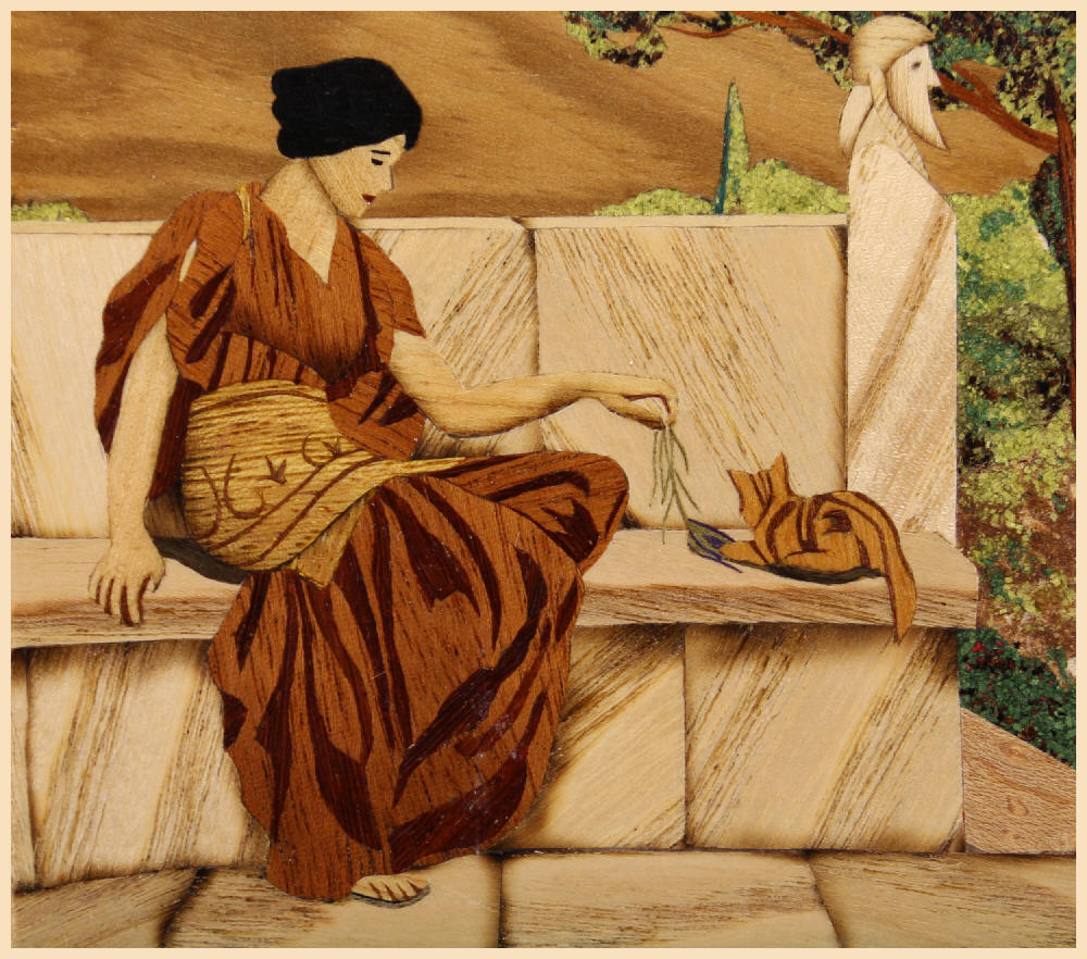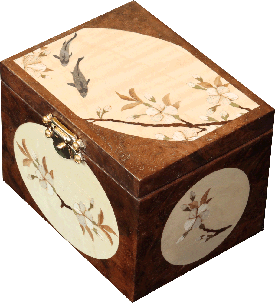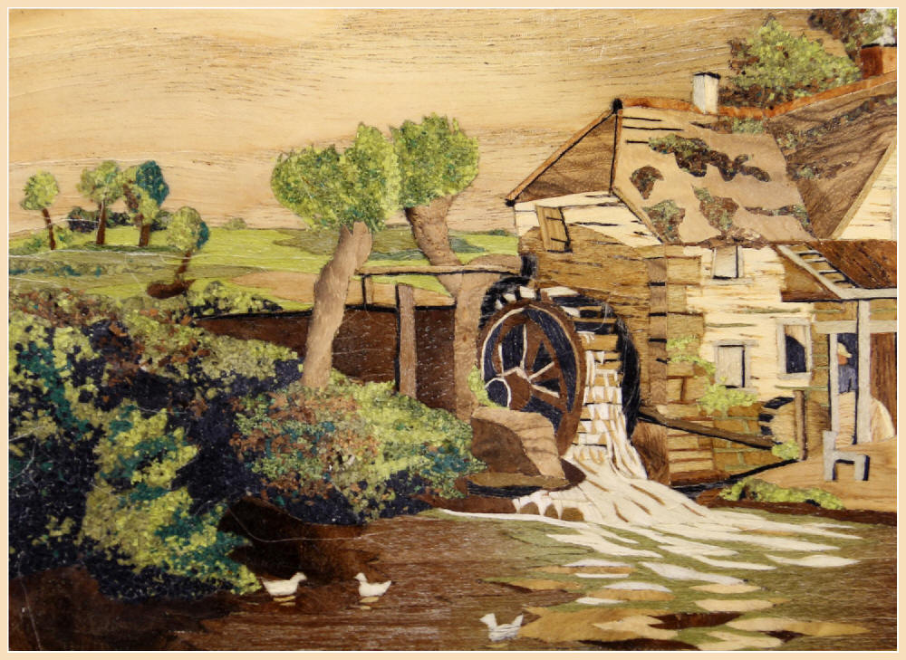 Our former Chairman is an acknowledged expert in miniature marquetry, but he's pretty handy when he turns his hand to larger work as well. All the items marked (m) are miniatures with a face area of less than 12 sq.inches or miniature applied items which fit into a box 4" x 3" x 3" !